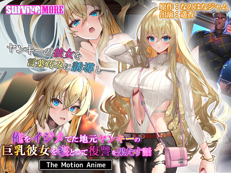 地元ヤンキーの彼女は巨乳の美女で、主人公をイジメていた過去を持つ。彼女を寝取ることで復讐を果たすという、独特な物語が展開される。SURVIVE MOREの作品はアニメーションが特徴で、魅力的な出演者達が登場する。SURVIVE MOREのこの作品はFANZA GAMESで最大90%OFFクーポン対象となっている。