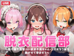 脱衣配信部 〜投げ銭で清楚JK・欲求不満ギャル・コスプレオタク娘を脱がせて孕ませろ〜【むらむら侍】 脱衣配信部では、投げ銭で清楚なJKや欲求不満ギャル、コスプレオタク娘を脱がして孕ませるシミュレーションゲームです。ギャルやコスプレ、メイドの要素を含み、中出しも含まれています。むらむら侍サークルが制作しました。 同人