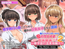 僕のデカちんがきっかけでイケイケ巨乳女子達とまさかの肉体関係にっ!!2〜修学旅行温泉地編〜…【SURVIVE MORE】 アニメーションを特徴とするアダルトPCゲームが登場。巨乳女子たちとまさかの肉体関係に発展する修学旅行温泉地編が描かれる。イケイケな女子たちとのエロティックな関係が展開する。 ゲーム